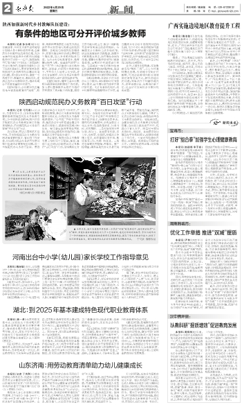 本报讯(记者孙永涛) 将乡村首席教师、乡村优秀青年教师奖励计划纳入骨干教师培养序列,全面落实乡村教师生活补助政策,允许有条件的地区将乡村教师和城镇教师分开评价……近日,陕西省教育厅等六部门下发《关于加强新时代乡村教师队伍建设的通知》(以下简称《通知》),要求紧紧抓住影响新时代乡村教师队伍建设的突出问题,用3到5年时间,造就一支热爱乡村、数量充足、素质优良、充满活力的乡村教师队伍,推动实现公平而有质量的乡村教育。