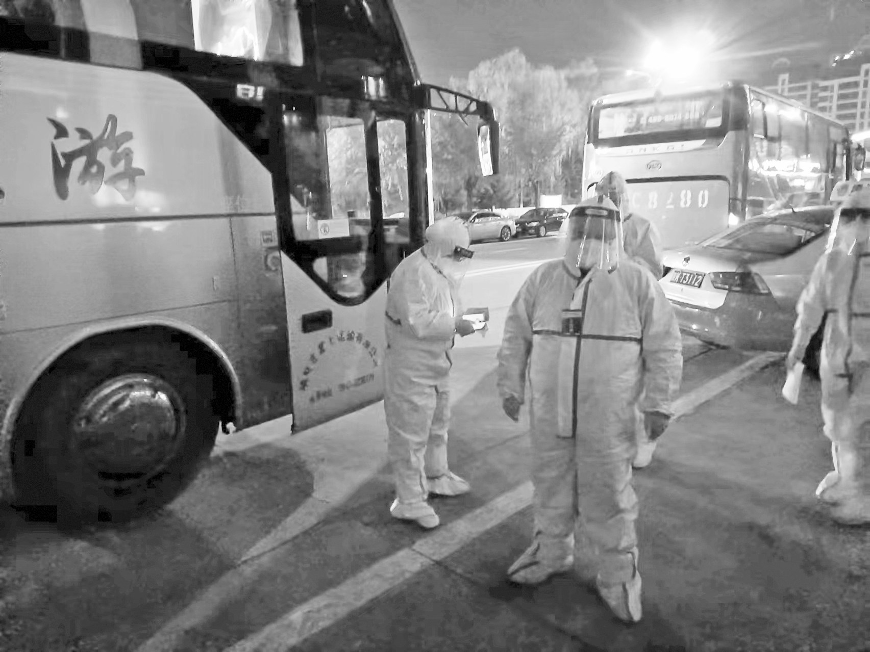 “大家累了困了,就在转运车上倚着或靠着座位眯一会儿,随后继续投入工作。”高飞说,“大家工作时都不敢多喝水,就怕因此影响工作。因为只要一来任务,就要立即穿好隔离服,做好各项消毒,任务完成后才能脱去防护服。”