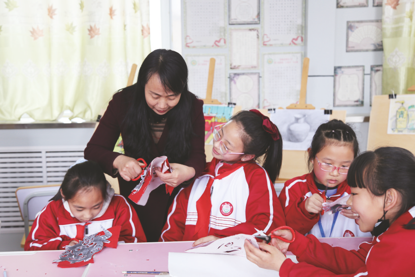 一把剪刀,一张红纸,剪出了活灵活现的十二生肖,剪出了冬奥会“顶流网红”冰墩墩,也剪出“双减”的快乐。在陕西省榆林市绥德县第四小学剪纸社团活动课上,学生们正按照非遗剪纸传承人朱新华老师指导的步骤,神情专注,聚精会神地尝试着、琢磨着,一幅幅略显稚嫩而又栩栩如生的剪纸作品渐渐形成……