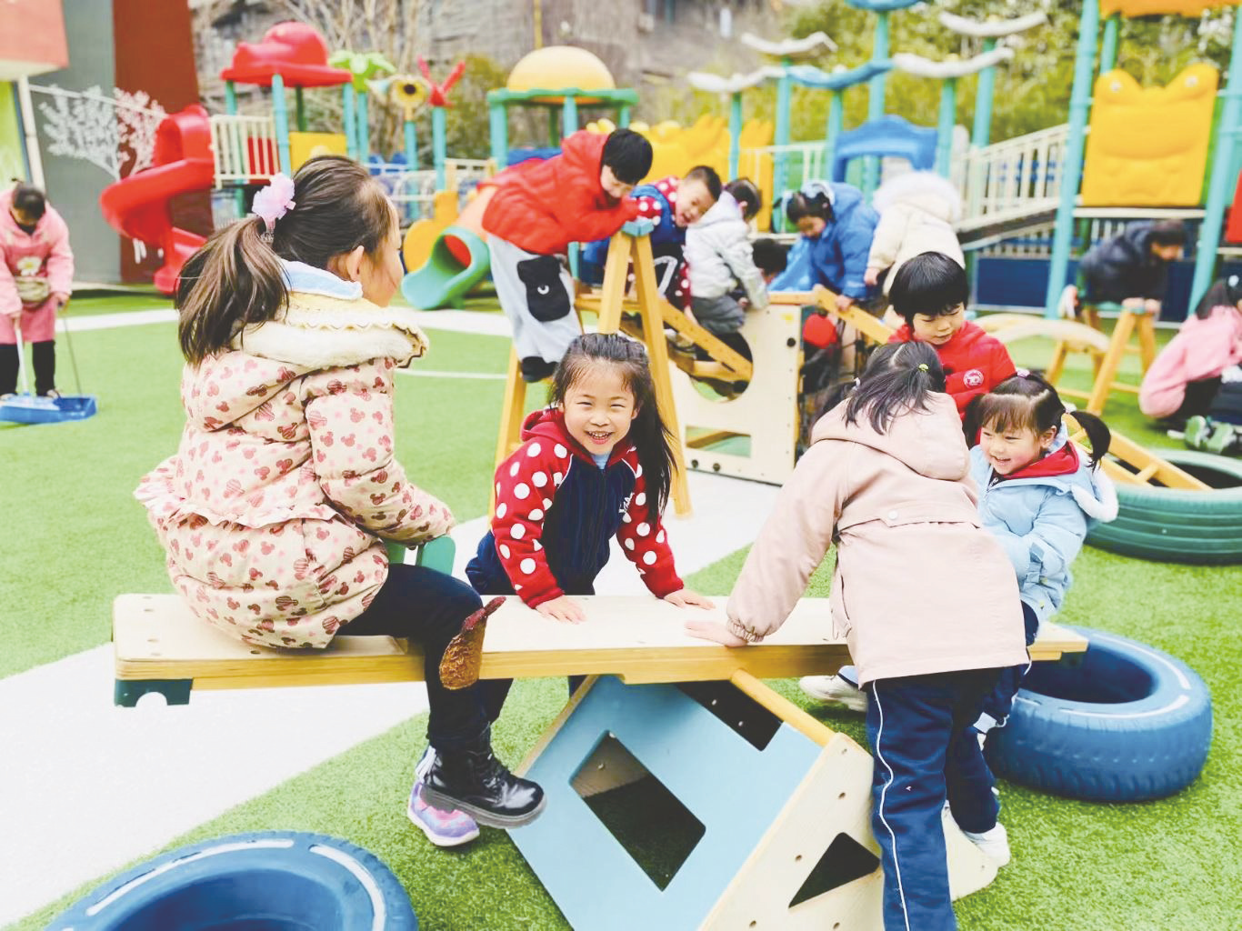 碑林区兴庆宫幼儿园的小朋友在户外玩耍