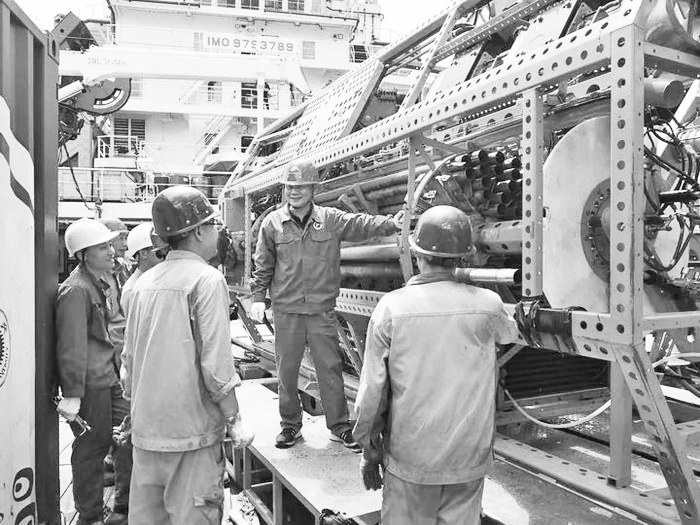 钻机完成海底作业、正从海底回收,从丹麦进口的配套收放绞车忽然发出巨大异响,一检查,收放绞车排缆系统的传动机构严重损坏。