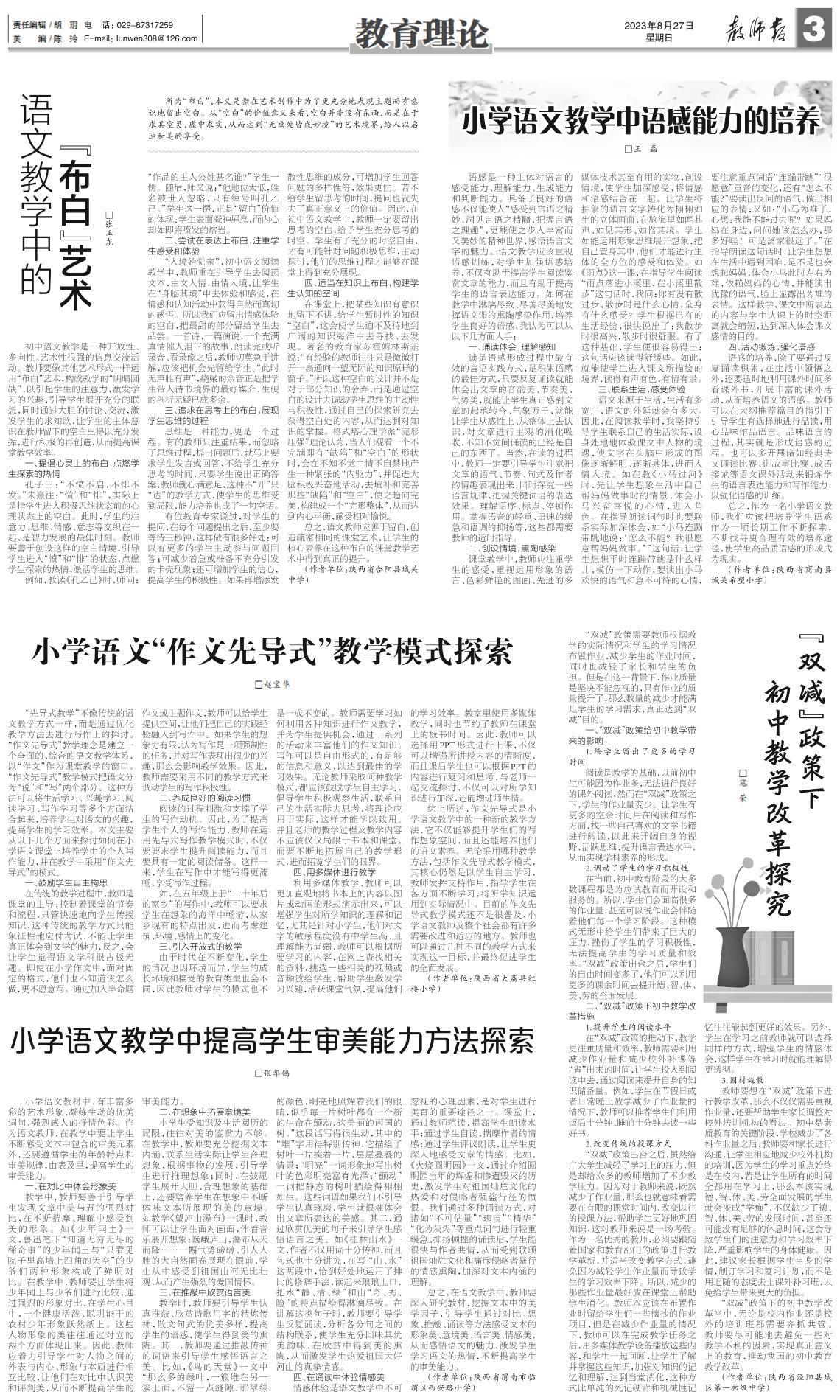 小学语文教学中提高学生审美能力方法探索
