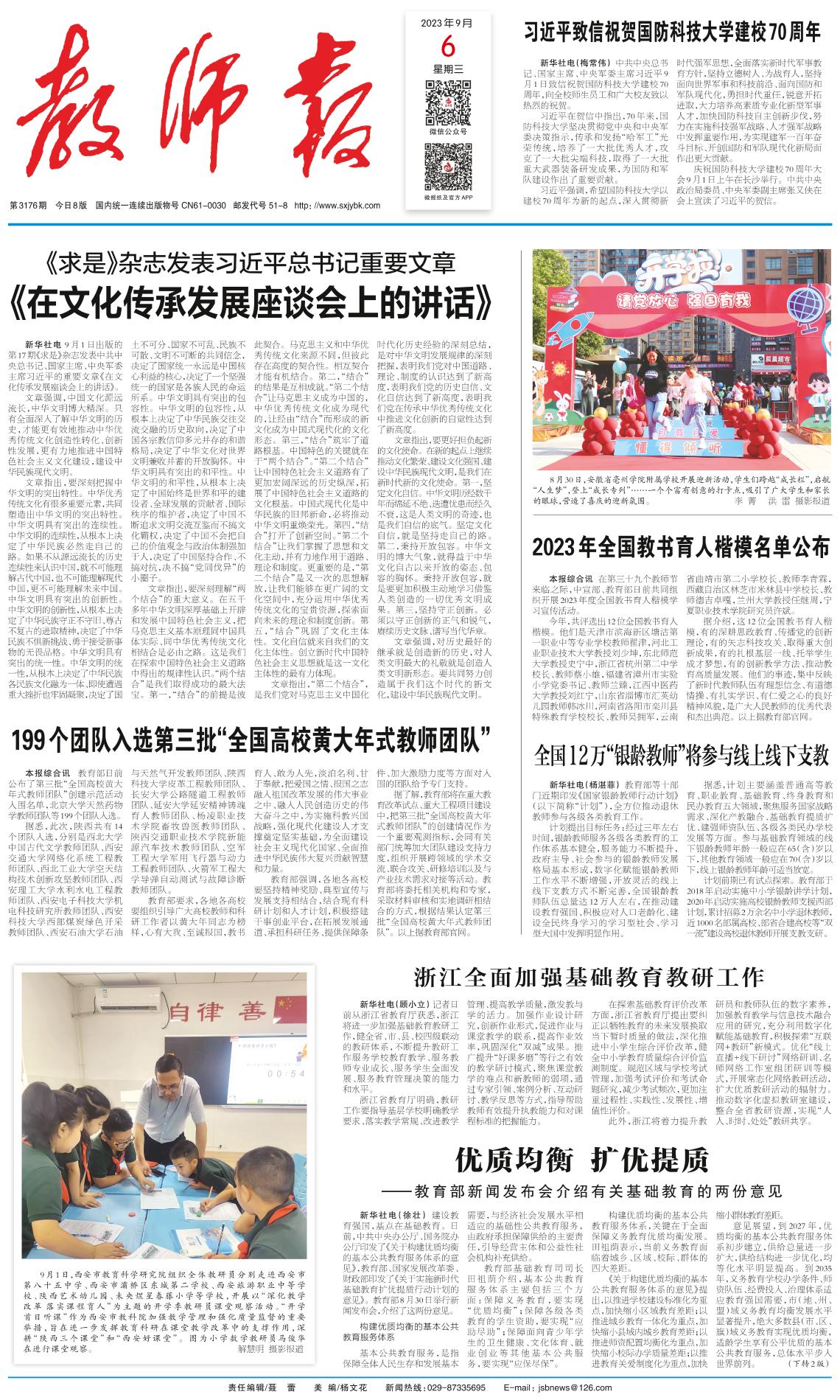 陕西将开展庆祝2023年教师节系列活动