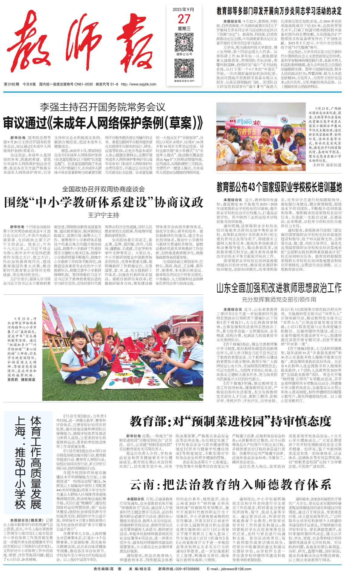 教育部等多部门印发开展向万步炎同志学习活动的决定