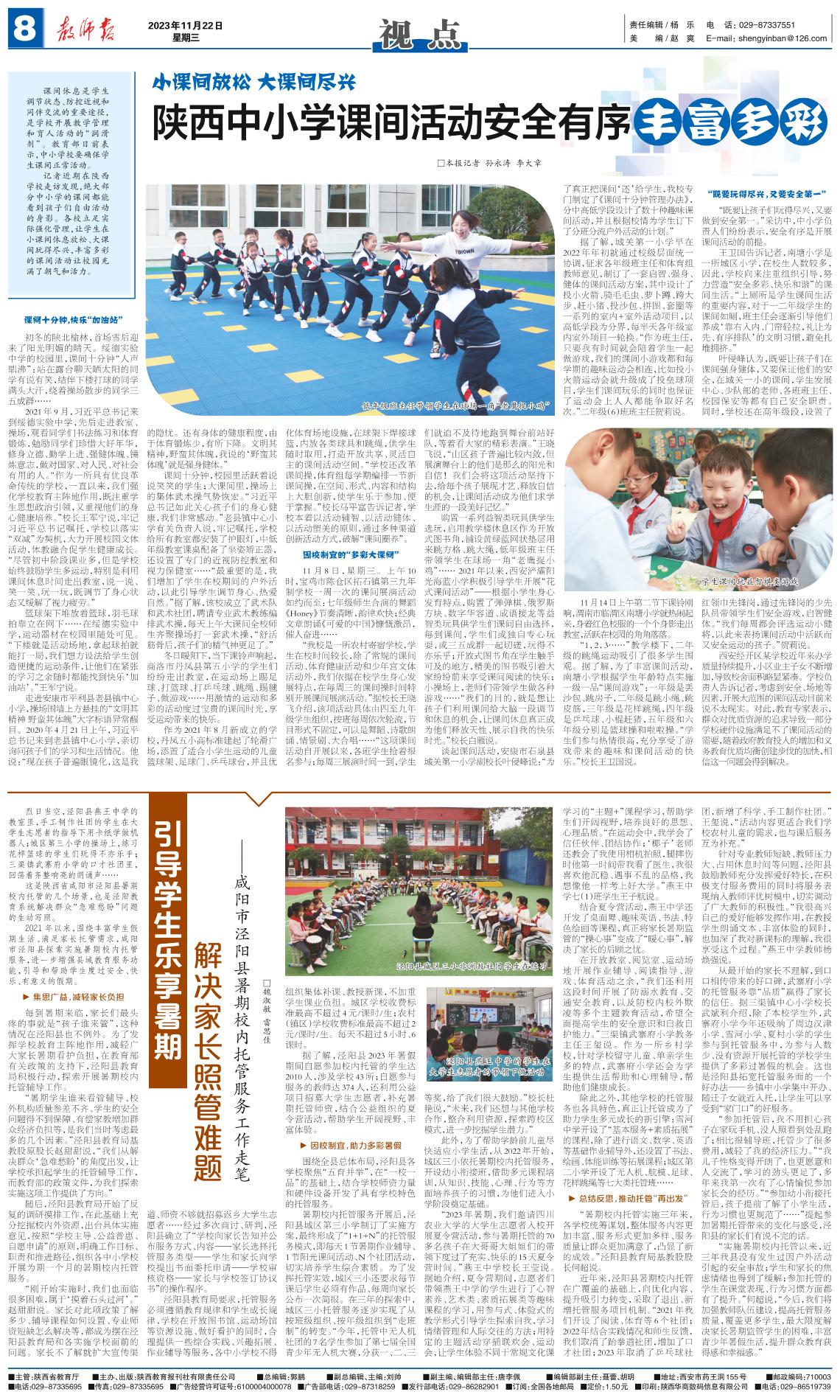 陕西中小学课间活动安全有序丰富多彩