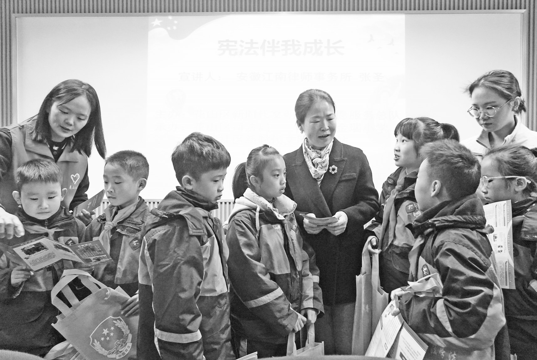 11月27日,安徽省马鞍山市花山区江东街道金瑞社区联合花山区司法局江东司法所,邀请安徽江南律师事务所张圣律师来到金瑞小学开展“宪法伴我成长”活动,迎接第十个国家宪法日的到来。