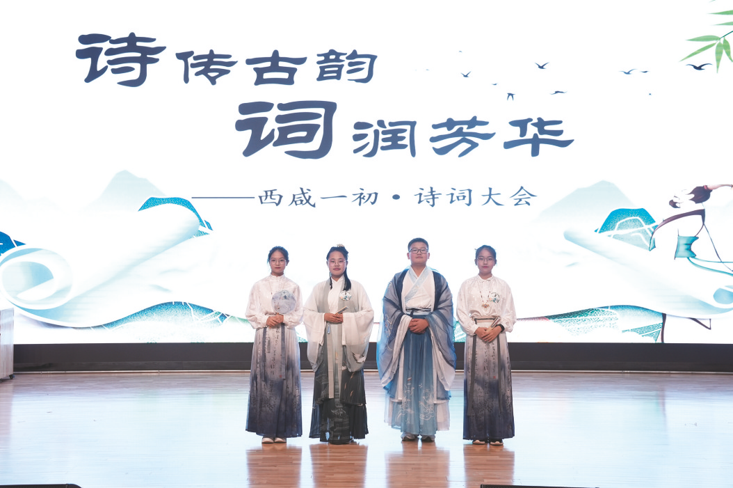 在这一周的学科节活动中,我们欢聚在“春秋家国梦”的飞花令共创活动中,充分感受汉语言文字方正质朴的魅力;我们欢聚在“诗传古韵·词润芳华”的诗词大会中,展现学科素养,厚植文化自信;我们欢聚在“见字如面·声而不凡”的经典书信诵读比赛中,在与革命先辈的对话里体味什么叫做“清澈的爱,只为中国”;我们欢聚在“践行少年使命·谱写青春华章”的演讲比赛中,誓以“咬定青山不放松”的执着、“宝剑锋从磨砺出”的毅力、“不畏浮云遮望眼”的勇气,奋力前行。