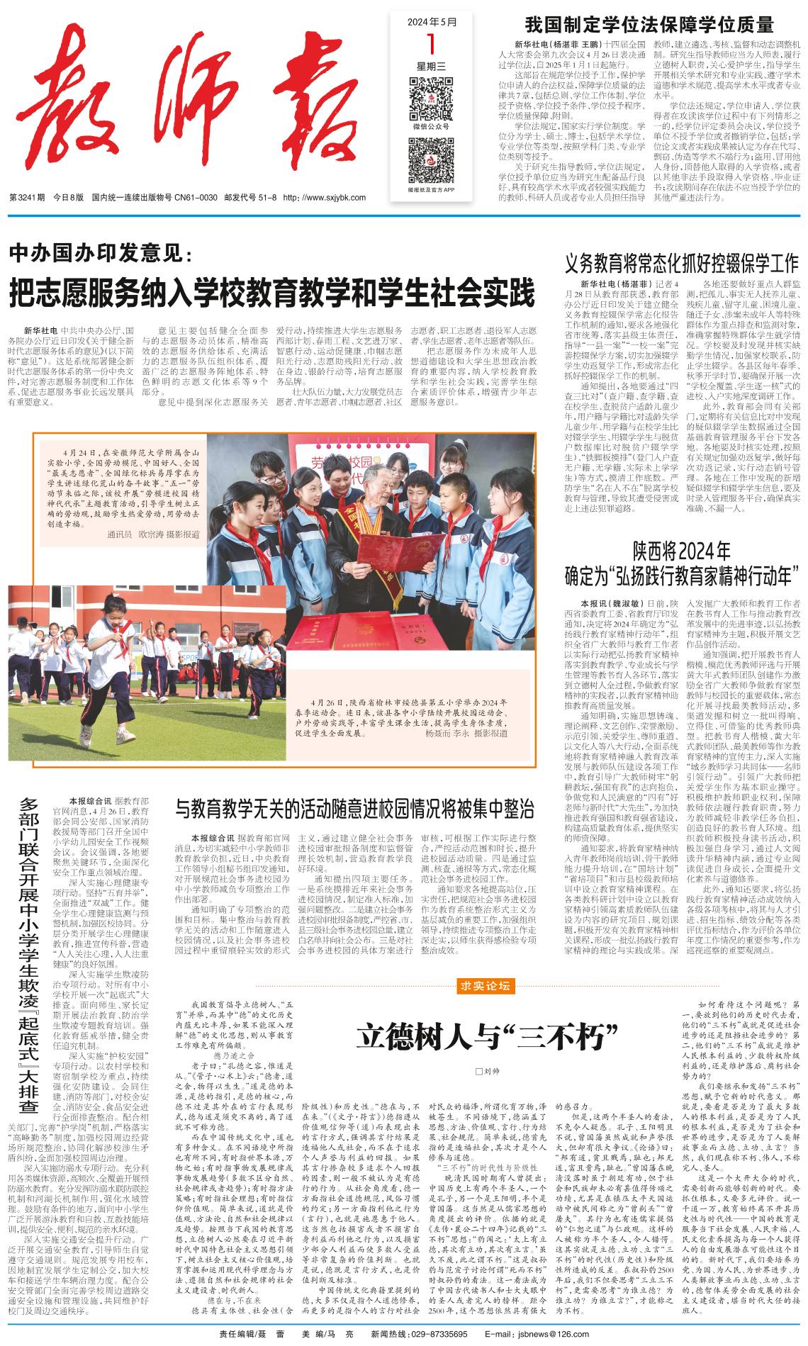 陕西将2024年确定为“弘扬践行教育家精神行动年”