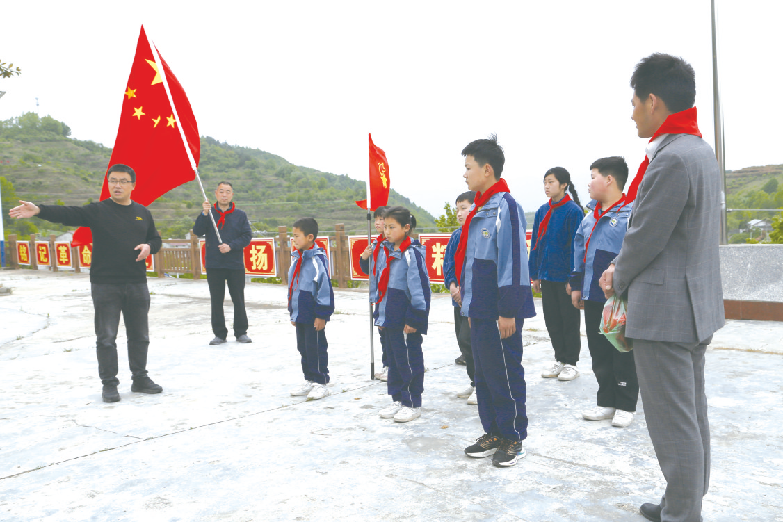 “我们是共产主义接班人,继承革命先辈的光荣传统,爱祖国,爱人民,鲜艳的红领巾飘扬在前胸……”4月16日下午,在鱼姐村红色文化教育基地,毛军正带领着新民小学的学生认真地唱着中国少年先锋队队歌,他们个个声音洪亮、精神饱满。