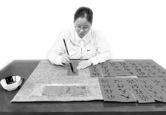 再遇知己,分外珍惜。上大学之后,我又重新拿起了毛笔,结识了同样热爱书法的朋友们。我们一起练习书法,相互交流、切磋,好不快哉!特别是考研的那段时光,每每拿起毛笔,好似在与知己谈心,谈理想、说烦恼;游走于黑白山水之间,与灵动飘逸的兰叶撇共舞,与一波三折的方头捺同唱,临摹《九成宫醴泉铭》一气呵成,心中压抑的情绪顷刻烟消云散!