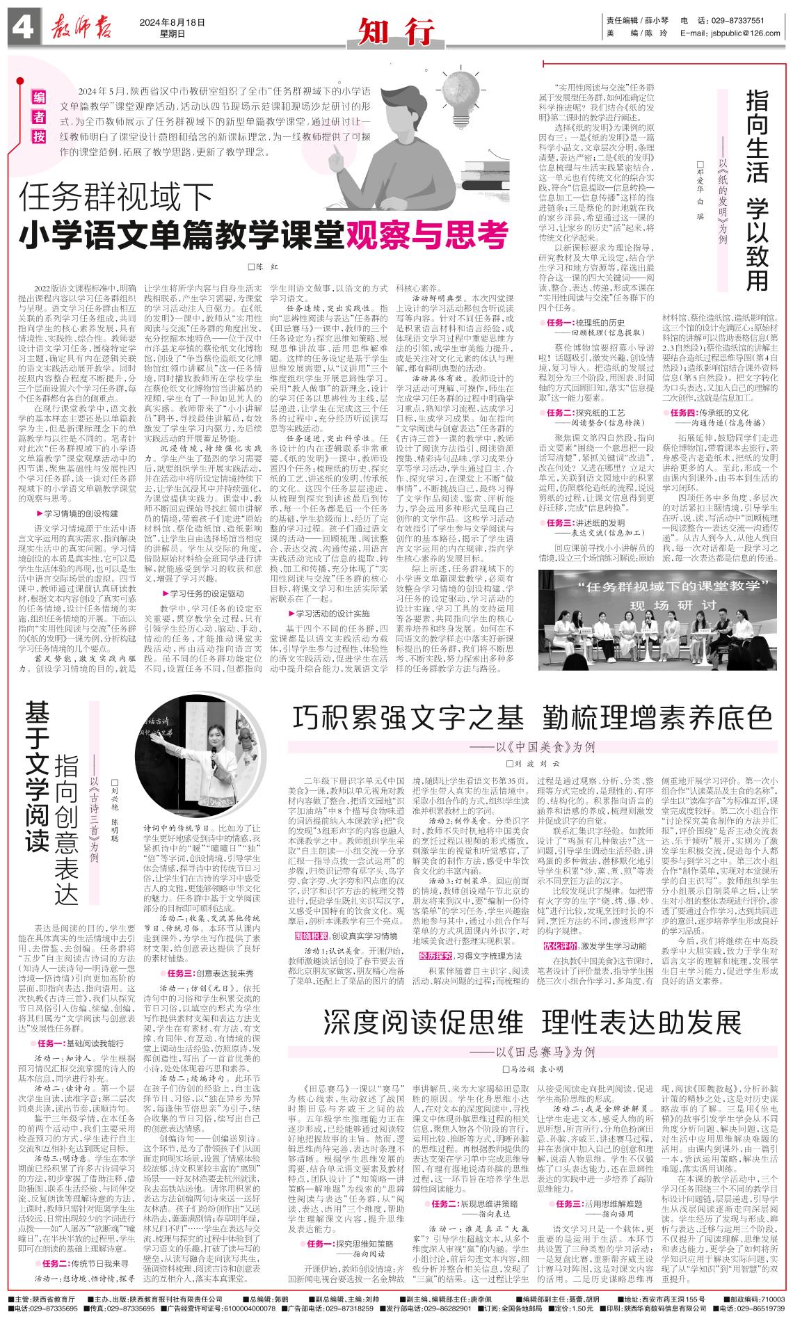 任务群视域下小学语文单篇教学课堂观察与思考