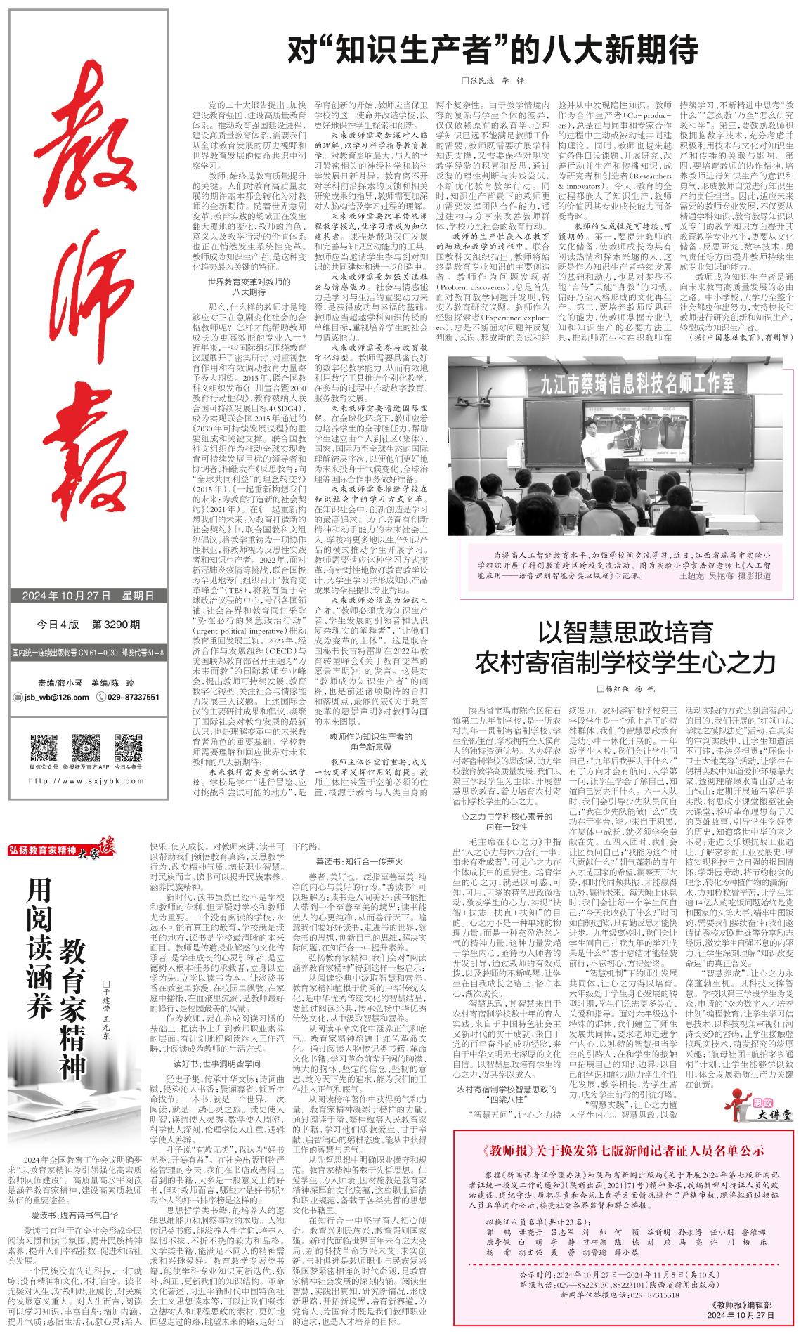 《教师报》关于换发第七版新闻记者证人员名单公示