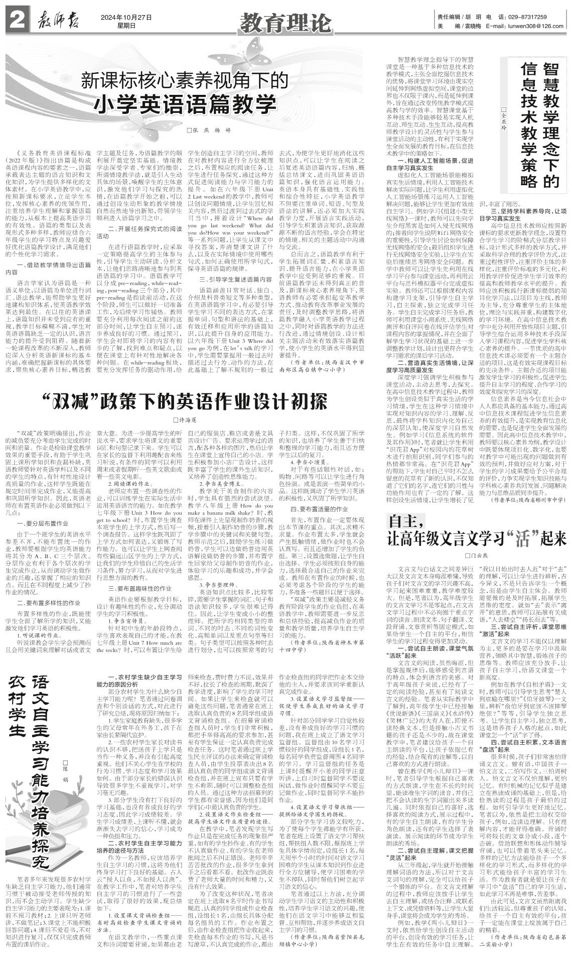 新课标核心素养视角下的小学英语语篇教学