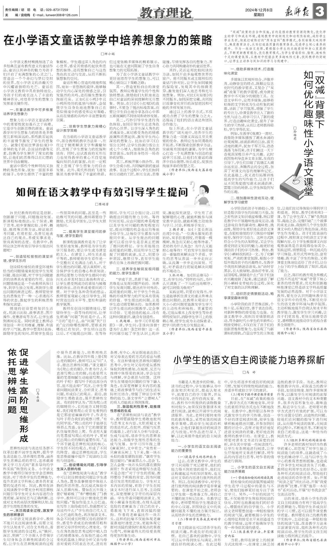 “双减”背景下如何优化趣味性小学语文课堂