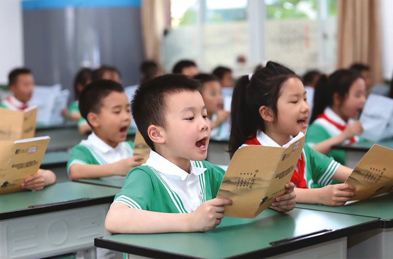 “夜饮东坡醒复醉,归来仿佛三更。家童鼻息已雷鸣。”“梨花淡白柳深青,柳絮飞时花满城。”……朗朗的诵读声回荡着,这是属于东坡小学学生们的午间诵读时光。