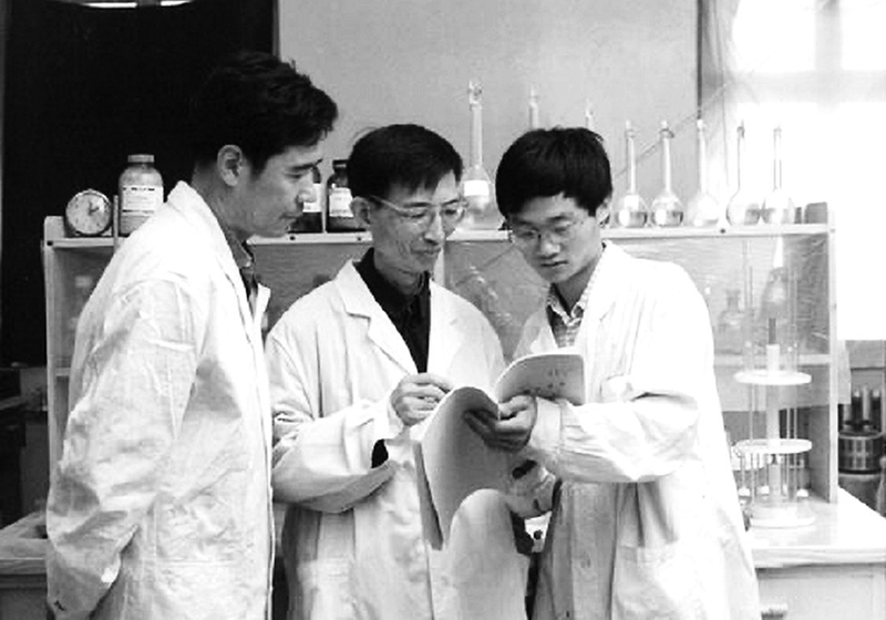 1983年,王方定(中)指导硕士研究生孙建国(右)