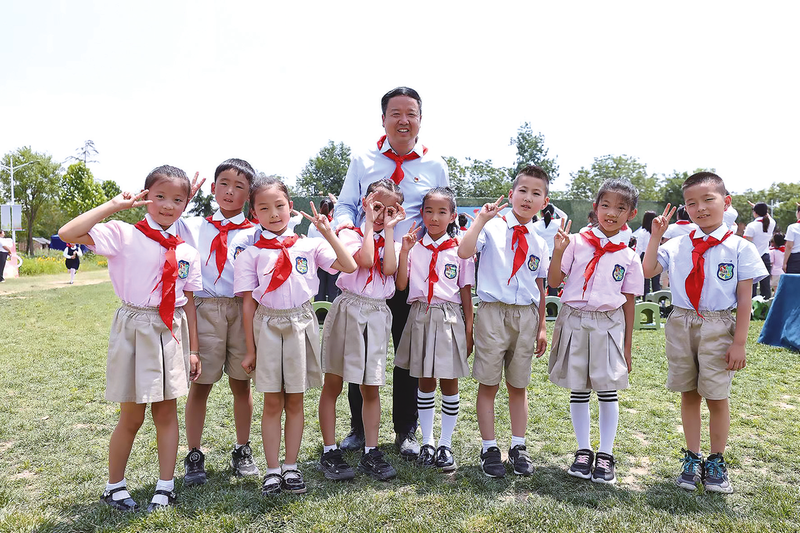 陕西师范大学实验小学党支部书记、校长罗坤和少先队员在一起