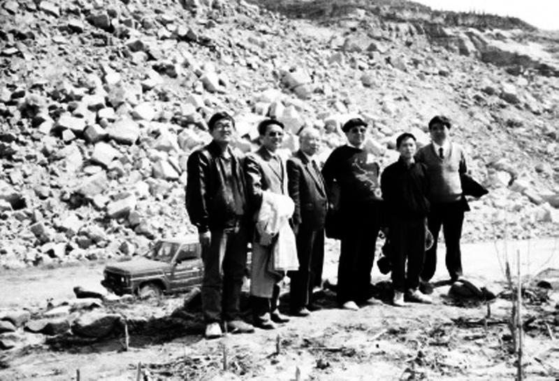 1994年,冯叔瑜(左三)在山西阳泉洞室爆破工地现场