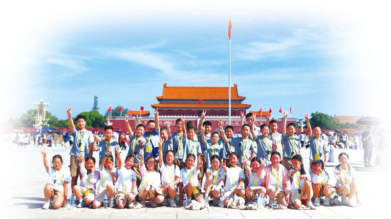 ▲第三届“走出大山看世界”研学团在天安门广场合影留念