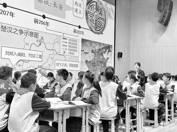 课程最突出的特色在于构建了“双师协同、文物入境”的教学新样态。历史教师作为“叙事者”,系统梳理从汉初困境到休养生息政策的历史脉络;博物馆讲解老师作为“实证者”,借助阳陵文物将抽象的“治世”景象转化为可触可感的实物证据。二者目标一致、无缝衔接,形成“史实讲解—实物验证”的教学闭环,使历史结论建立在坚实的实证基础上,增强教学的说服力。