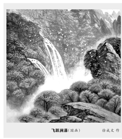 飞跃涧瀑(国画)