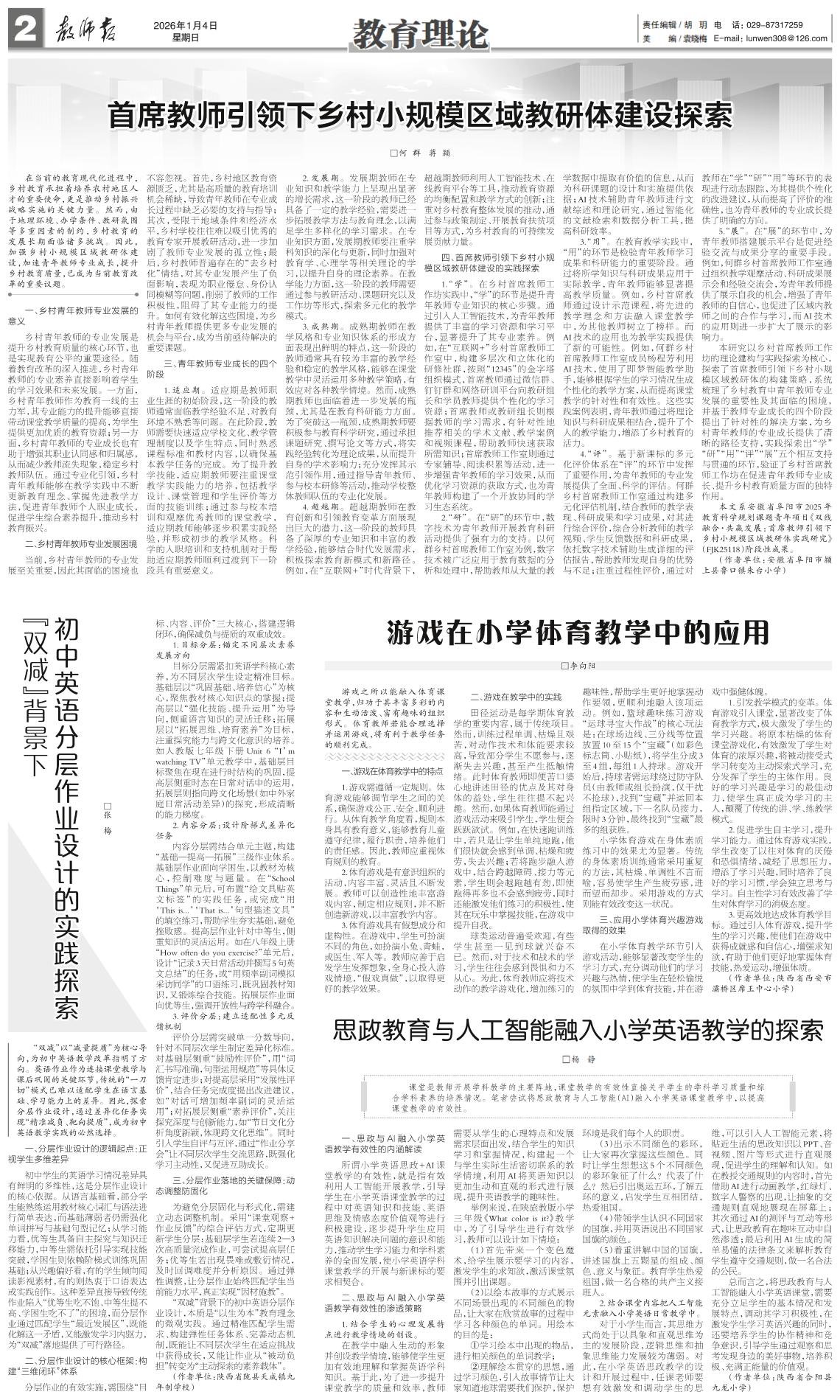 首席教师引领下乡村小规模区域教研体建设探索