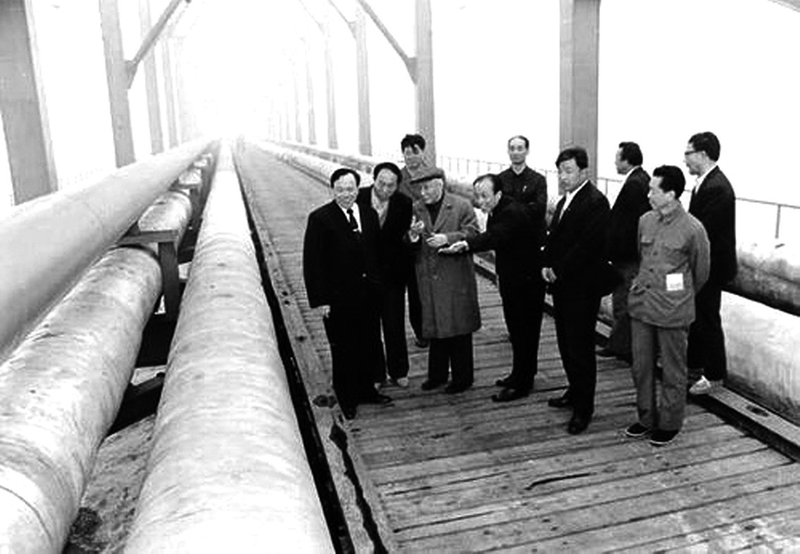 耄耋之年的钱令希(前排左三)赴鲇鱼湾了解栈桥的现状