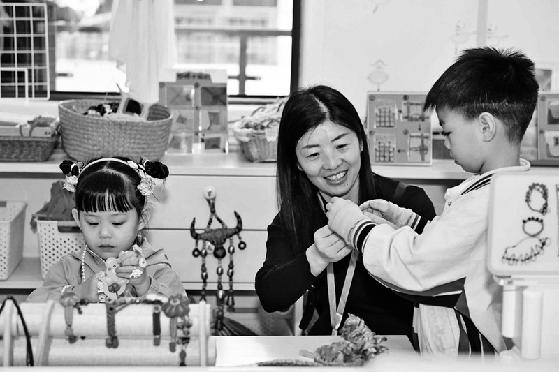 康晓艳与幼儿一起做手工