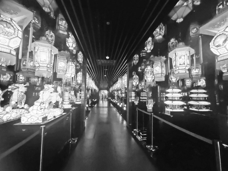 在月圆团圆的日子里,漫步于海宁硖石的南关厢历史文化老街。青石板路、白墙黛瓦间,一盏盏灯彩渐次亮起,与天上的明月交相辉映。老街上的灯彩非遗馆是灯的海洋,有大型灯彩,如花卉鸟兽亭灯、阁楼灯、宝塔灯、珠帘伞灯、盆灯等;也有小型灯彩,如悬挂在廊檐下的宫灯、手持的兔子灯、竿挑的花灯、依壁而置的走马灯……不论是大型灯彩还是小型灯彩,都是无数灯彩艺人殚精竭虑,夜以继日的杰作。在这里,可以探访灯彩的悠久历史,观赏匠人的不朽作品,了解平实的乡风民俗,感受非遗古韵,感悟文化之魂。